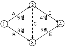 92. 다음의 크리티칼 패스(주공정선)를 바르게 계산한 것은?
