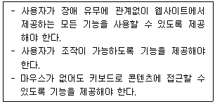 11. 다음 글상자에서 설명하고 있는 웹 접근성의 구성 원칙으로 가장 올바른 것은?