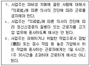 3. 산업안전보건법령상 질병자의 근로 금지·제한 및 유해·위험작업에 대한 근로 시간 제한에 관한 설명으로 옳은 것을 모두 고른 것은?
