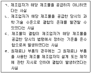 48. 제조물 책임법상 손해배상책임을 지는 자가 사실을 입증한 경우에 손해배상책임을 면(免)하는 사유에 해당하지 않는 것을 모두 고른 것은?