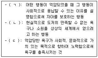 47. 적응기제에 관한 내용이다. ( )에 들어갈 것으로 옳은 것은?