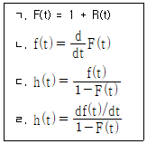 37. 신뢰성 척도에 관한 함수 중 옳은 것을 모두 고른 것은? (단, F(t): 고장분포 함수, f(t):고장밀도함수, R(t):신뢰도함수, h(t): 고장률함수, t: 시간이다.)