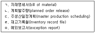 69. 자재소요계획(material requirement planning)의 입력 자료를 모두 고른 것은?