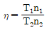 49. 토크변환기에서 원동축의 토크를 T1, 회전수를 n1, 피동축의 토크를 T2, 회전수를 n2라 할 때, 토크변환기의 효율은?