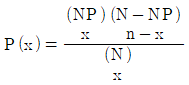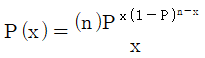 20. 이항분포에서 매회 A가 일어나는 확률이 일정 한 값 P일 때 n회의 독립시행 중 사상 A가 x회 일어날 확률 P(x)를 구하는 식은? (단, N은 로트의 크기, n은 시료의 크기, P는 로트의 모부적합품률 이다.)
