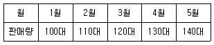 19. 다음 표는 어느 자동차 영업소의 월별 판매실적을 나타낸 것이다. 5개월 단순이동 평균법으로 6월의 수요를 예측하면 몇 대인가?