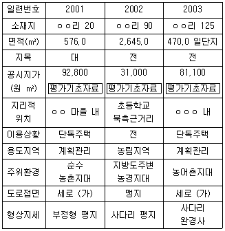86. 다음은 2025년 공시된 표준지공시지가를 열람한 내역을 표로 나타낸 것이다. 이에 관한 설명으로 옳지 않은 것은?