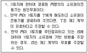 29. 甲은 자신 소유의 X토지에 관하여 乙과 유효하게 매매계약(제1 계약)을 체결한 후 乙로부터 매매대금 전액을 지급받았다. 丙은 제1 계약과 관련한 甲의 배임행위에 적극 가담하여 甲과 X토지에 관한 매매계약(제2 계약)을 체결한 후, 이를 원인으로 甲으로부터 소유권이전등기를 경료받았다. 이에 관한 설명으로 옳은 것을 모두 고른 것은? (다툼이 있으면 판례에 따름)