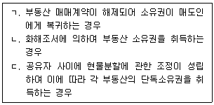 19. 부동산 물권변동을 위하여 등기가 필요하지 않은 경우를 모두 고른 것은? (다툼이 있으면 판례에 따름)