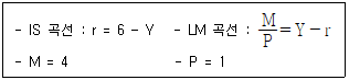 57. 아래의 폐쇄경제 IS-LM 모형의 초기 균형에서 중앙은행이 이자율을 0.5만큼 인상시키고자 할 때, 명목화폐공급량 변화분의 절댓값은? (단, Y는 국민소득, r은 이자율, P는 물가, M은 명목화폐공급량)