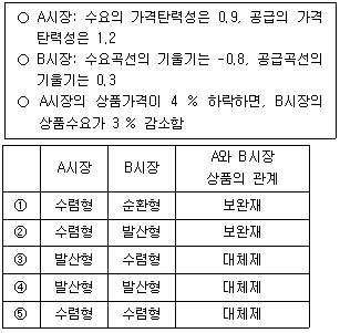 114. 다음 조건하에서 거미집이론(Cob-web theory)에 의한 부동산시장 A와 B의 모형형태와 A시장과 B시장 상품의 관계는? (단, X축은 수량, Y축은 가격이고, 가격변화에 수요는 즉각 반응하지만 공급은 시간적인 차이를 두고 반응하며, 다른 조건은 동일함)