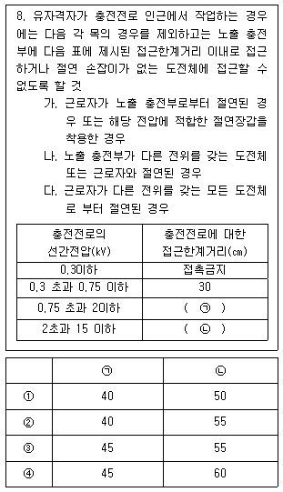 118. <보기>는 「산업안전보건기준에 관한 규칙」 중 ‘충전전로에서의 전기작업’에 관한 내용의 일부이다. ( ) 안에 들어갈 숫자로 옳은 것은?