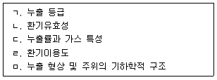 108. 폭발위험장소의 종별(Zone)을 추정할 때 포함해야 하는 요소를 <보기>에서 모두 고른 것은?