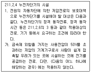 103. <보기>는 「한국전기설비규정(KEC)」 중 ‘누전차단기의 시설’에 관한 내용의 일부이다. (다음의 어느 하나에 해당하는 경우) 가아닌 것은?