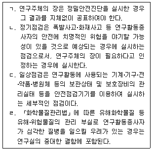 1. 「연구실 안전환경 조성에 관한 법령」에서 규정하는 안전점검 및 정밀안전진단 등에 관한 설명으로 옳은 것을 <보기>에서 모두 고른 것은?