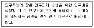 17. <보기>는 「연구실 안전환경 조성에 관한 법률 시행규칙」에서 규정하는 안전 관련 예산의 배정에 관한 설명이다. ( )에 들어갈 말로 옳은 것은?