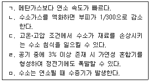 44. 수소가스를 사용하는 연구실에서 폭발 사고가 발생하였다. 사고의 원인이 된 수소의 특성에 관한 설명으로 옳은 것을 <보기>에서 모두 고른 것은?