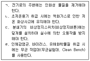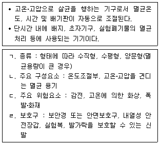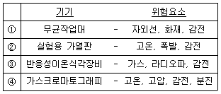 74. 다음은 연구실 주요 기계설비의 종류별 위험성에 관한 내용이다. ( ) 안에 들어갈 말로 옳은 것은?