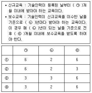 12. <보기>는 「연구실 안전환경 조성에 관한 법률 시행령」에서 규정하는 안전점검 및 정밀안전진단 대행기관 기술인력 교육에 관한 내용이다. ( ) 안에 들어갈 숫자로 옳은 것은?