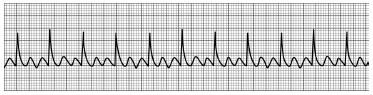 28. 56세 여자가 어지러움을 동반한 의식장애를 보인다. 혈압이 65/40 mmHg이고 심전도가 다음과 같을 때, 시행해야 할 처치로 옳은 것은?