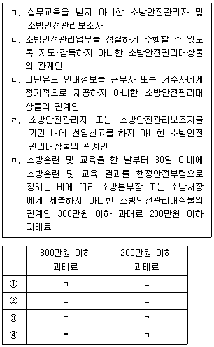 14. 「화재의 예방 및 안전관리에 관한 법률」상 과태료 부과기준을 <보기>에서 찾아 옳게 짝지은 것은?