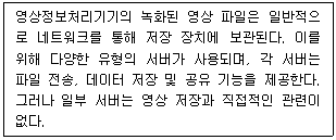 17. 다음은 영상정보처리기기의 영상 저장 방식에 대한 설명이다. 아래에서 정의하는 조건에 적합하지 않은 서버 종류는?