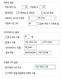 24. 영상정보관리 서버 설정 화면 중 일부의 예이다. 설정에 대한 설명으로 옳지 않은 것은?