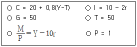 29. 아래 폐쇄경제 IS-LM모형에서 현 수준의 중앙은행 명목통화량(M)이 100일 때, 균형국민소득과 균형이자율은? (단, Y는 국민소득, C는 소비, I는 투자, G는 정부지출, T는 조세, r은 이자율, P는 물가수준이고, 초기 경제상태는 균형이다.)
