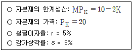 3. 기업 A의 생산함수가 Q=9L1/3K2/3이고, 노동투입량(L)과 자본투입량(K)은 각각 8과 27일 때, 자본의 한계생산(MPK)과 평균생산(APK)은?