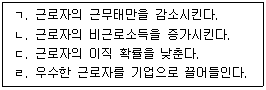 37. 효율성임금이론(efficiency wage theory)에서 높은 임금이 생산성을 높이는 이유에 관한 설명으로 옳지 않은 것을 모두 고른 것은?