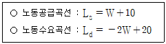 38. 정부는 고용하는 근로시간마다 1의 급여세(payroll tax)를 기업에게 부과하는 정책을 도입하였다. 아래의 조건에서 이 정책으로 인한 사중손실은? (단, L은 근로시간, W는 시간당임금이다.)