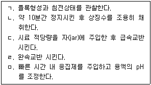 35. 다음은 자-테스트(jar-test)를 무작위로 나열한 것이다. 일반적 순서를 올바르게 배열한 것은?
