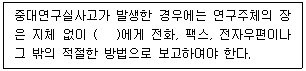 47. 연구실 안전환경 조성에 관한 법령상 중대연구실사고 등의 보고에 관한 사항으로 ( )에 들어갈 내용으로 옳은 것은?
