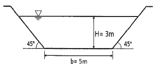 67. 아래 그림과 같은 사다리꼴 인공수로의 단면적(A)과 경심(R)은 약 얼마인가?