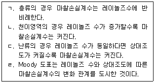 75. 관수로 흐름의 마찰손실계수에 관한 설명으로 옳은 것을 모두 고른 것은?