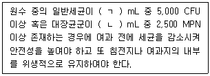 11. 미생물 기준에 관한 내용이다. ( )에 들어갈 내용으로 옳게 나열한 것은?
