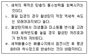 25. 정수시설의 입상활성탄 세척에 관한 설명으로 옳은 것을 모두 고른 것은?