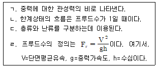 70. 개수로 흐름상태를 나타내는 프루드수(Froude number)에 관한 설명으로 옳은 것을 모두 고른 것은?