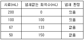 37. 냄새 역치값(TON)을 구하는 실험에서 다음과 같은 결과를 얻었다. 이 경우 TON은?