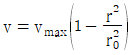 으로 주어졌을 때, 원관 내 평균유속 vm과 최대유속 vmax과의 관계로 옳은 것은? (단, r은 관 중심에서의 거리, r0는 반경이다.)