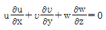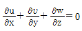66. 비압축성 흐름의 3차원 연속방정식으로 옳은 것은? (단, u, v,는 각각 x, y, z방향의 속도이다.)