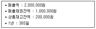 38. 다음 글상자의 자료를 이용하여 재고 회전기간을 구한 값으로 올바른 것은?