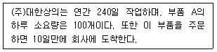 39. 다음 글상자에서 설명하는 부품 A에 대한 재주문점 값은?