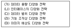 75. 다음 중 상품 다양화 전략에서 데이터 차원의 다양화 전략 유형들로만 짝지어진 것은?