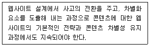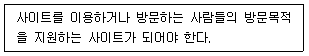 24. 다음 글상자에서 설명하고 있는 성공적 웹사이트 구축을 위한 디자인 관점의 특징으로 가장 올바른 것은?