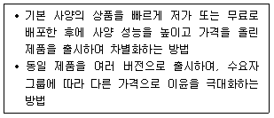 3. 다음 글상자에서 설명하는 가격차별화 전략으로 가장 올바른 것은?