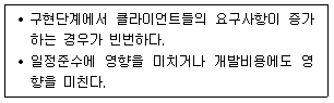 21. 다음 글상자에서 설명하고 있는 프로젝트 위기요인으로 가장 올바른 것은?