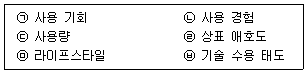 9. 다음 글상자에서 구매행동 변수로만 짝지어진 것은?