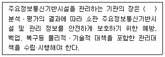 82. 다음 중 주요정보통신기반시설 보호에 필요한 지침에 반드시 포함되어야 할 사항으로 가장 올바르지 않은 것은?
