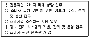 91. 다음 글상자의 업무 중에서 소비자기본법 시행령에서 정해져 있는 ‘소비자종합지원시스템을 운영 위탁하는 법인이 3년 이상의 경력자를 보유해야 하는 업무’들로 가장 올바르게 짝지어진 것은?